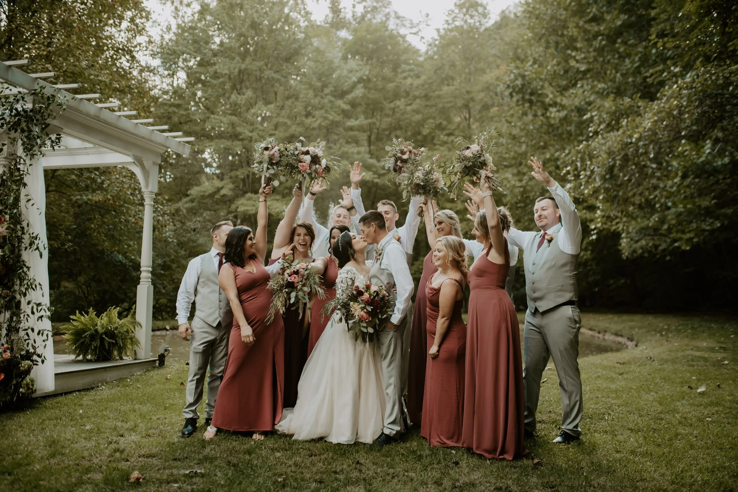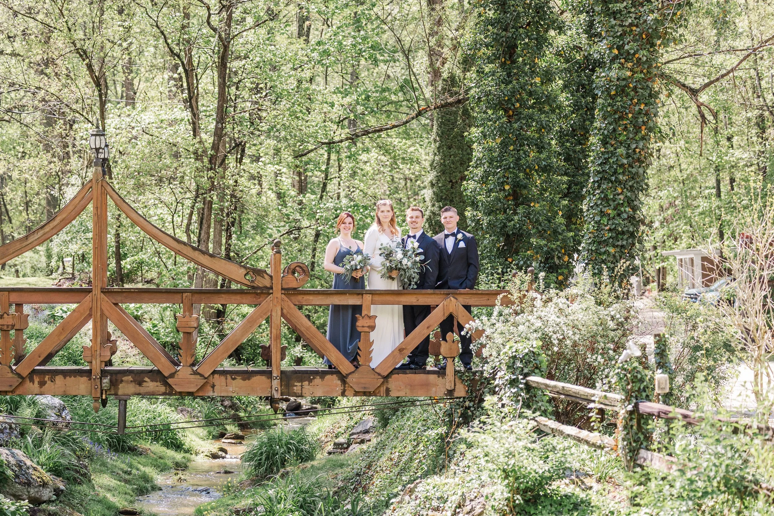 Picturesque, garden setting with a babbling stream running through the property, heated event tent with deck flooring, and endless photo opportunities for you and your guests